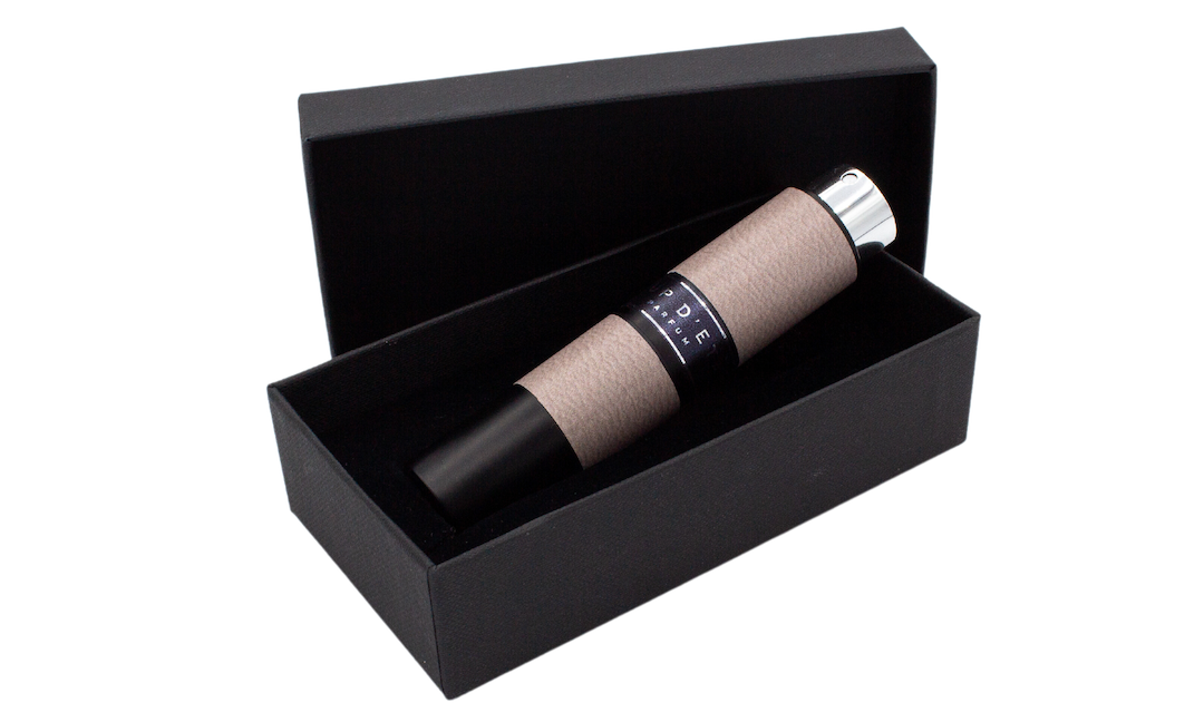 The outset is potent and vibrant, revealed by notes of lavendin topped with cardamom, a fresh spice that lends itself to blending. For strength and thematic character a mellow iris, distinct, particular with a rose-like imperious geranium. The trail is present, smooth, round, slightly feral with spicy notes of vanilla, patchouli and the woody and leathery undertones of cypriol.