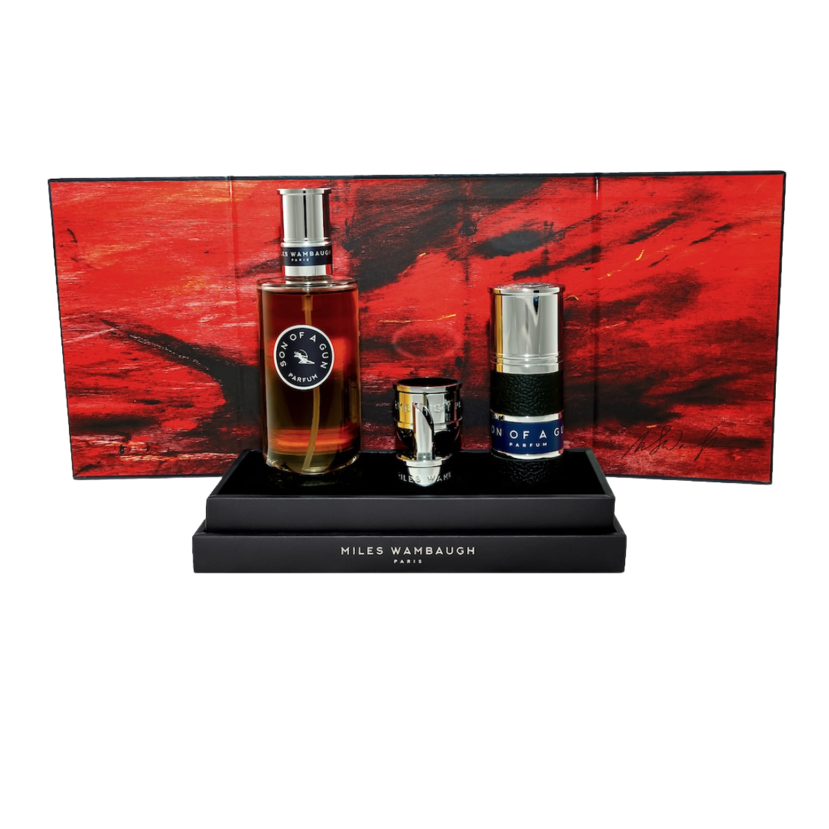 Miles Wambaugh is a luxury concept dedicated to the dialogue between visual and olfactory art — where painting and fragrance intertwine. Created by artist Miles Wambaugh, the brand brings together a circle of friends and legendary names in perfumery and design. Each scent is composed by master perfumer Dominique Ropion, while the iconic bottles are crafted by the renowned designer Pierre Dinand, adding form to invisible emotion.